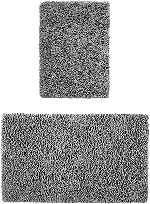 COORDINATED STYLE: Designed to complement any bathroom decor, our chenille bath mat set comes in a chic grey color, offering a modern and sophisticated touch to your space. Achieve a cohesive look with matching or coordinating mats.