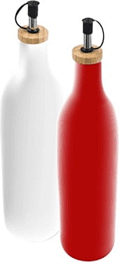 STONEWARE AND BAMBOO LID - High-quality stoneware and bamboo lid ensure your container looks beautiful all the time! The stainless steel oil container looks sleek and modern.