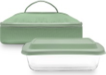 COMPLETE SET: This comprehensive package includes a high-quality glass baking dish with a plastic lid for secure food storage. The polyester insulated carry bag not only ensures portability but also maintains the temperature of your delicious creations.